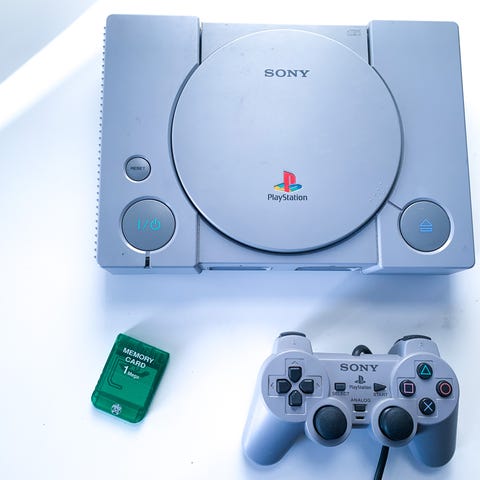 Sony Playstation PS1 spillekonsol med controller og kabler