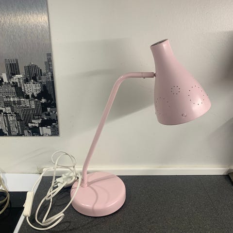 Ikea bordlampe med pære og ledning.