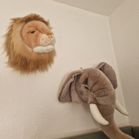 Søde dyrehoveder man kan hænge op på væggen i børneværelset.