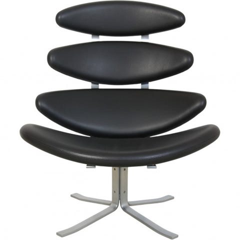 Erik Jørgensen Corona stol betrukket med originalt sort læder, og med stel af børstet stål. Stolen er fra omkring 2020, og fremstår i flot stand, med enkelte små mærker i læderet. Stolen har drejefunktion. •Designer: Erik Jørgensen •Producent: Erik Jørgensen •Produktions år: Omkring 2020 •Model: Corona stol •Mål: Højde 97 / Bredde 88 / Dybde 82 / Sædehøjde 42 Cm •Materialer: Sort læder •Funktioner: Drejefunktion •Stand: Brugt Erik Jørgensen Corona stol i sort læder 2020.