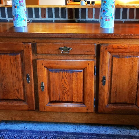 Stor skænk i egefiner med tre skuffer og to låger