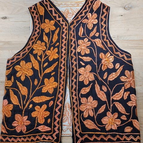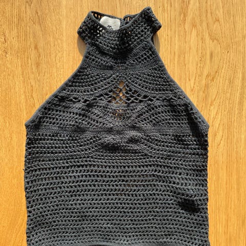 Super flot og enestående design til den modige Happy Hippie kvinde! Smuk lang vest - stor i størrelsen - passer fra Large/str 44 og opefter. Hæklet af Eileen Klitvad og det er ‘one of a kind’. Flot over sort tøj!