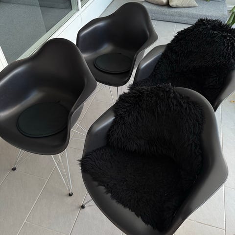 Vi har brugt stolene i mange år til stor glæde for os selv og gæster, siddekomforten fås absolut ikke bedre! Vi har nu som så mange andre Wegner træstole, men Eames stolene er langt mere komfortable.