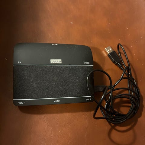 Jabra Freeway, håndfri opkald, Bluetooth til alle biler. Nem at betjene, stemmestyret opkald op til 14 timers taletid, 40 dage standby , rækkevidde op til 10 meter, tænder automatisk ved indstigning. Kan parres med to telefoner samtidig. Surround sound musik.