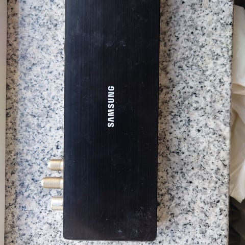 Boksen er den centrale enhed til Samsungs high-end skærme, hvor alle HDMI- og antennestik samles, så du kun har ét tyndt kabel op til selve fjernsynet.