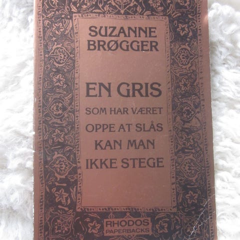 En gris som har været oppe at slås kan man ikke st, Suzanne Brøgger, genre: roman, Pæn hæftet roman, Forlaget Rhodos, 1979, 95 sider.