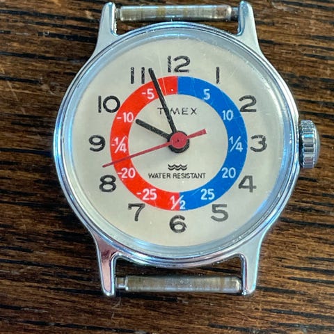 Retro ur fra Timex med optræksværk. Læderrem. Lille urkasse. Til børn eller dame.