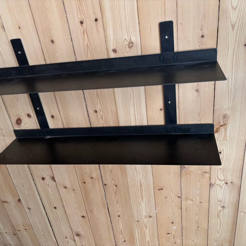 Entrehylde i sort metal og messing,til vægmontering.