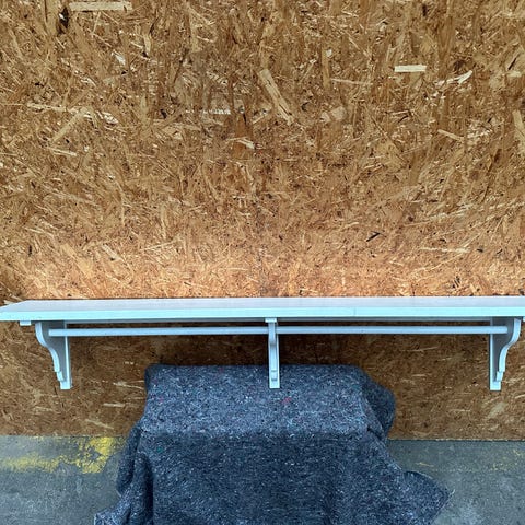 Ældre entrehylde i forkromet metal,med nedadgående bøjlestang til 15 bøjler.