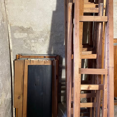 Stigereoler i fyrretræ. 1 dobbelt og 2 enkelt. Prisen er per reol.