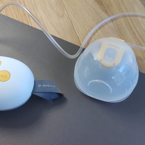 Single brystpumpe fra Medela. Fungerer som den skal, vi er dog skiftet til modermælkserstatning, derfor bruges den ikke længere.