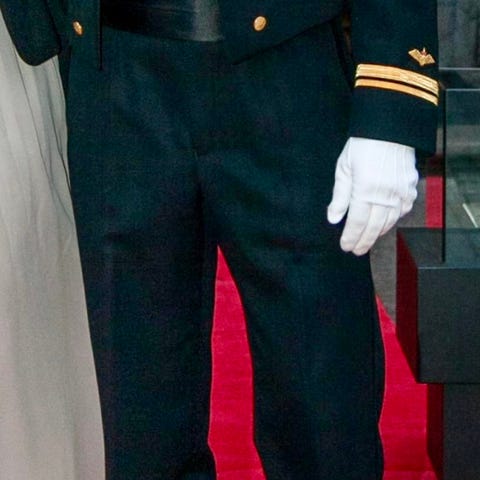 Hærens Selskabsuniform M/72 str. M med påsyet Faldskærmsvinge og Ingeniørregimentets logo.