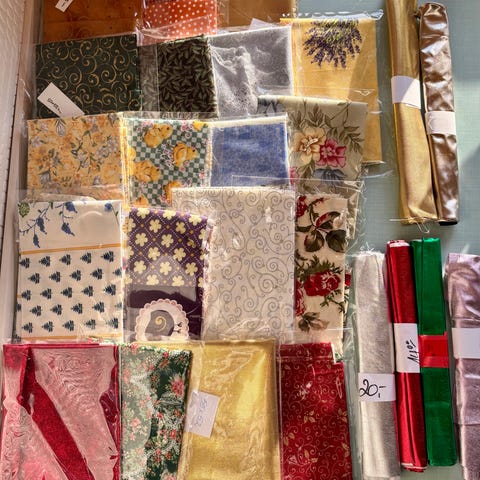 En kæmpe stak klippede firkanter til patchwork tæppe eller andet.