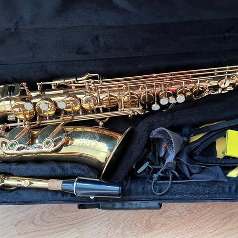 Super fin altsax fra Jupiter. Det er en ideel begyndersax på højde med Yamaha. Saxofonen er i super fin standen er nyserviseret, puderne er fine (to stk er skiftet) den fungerer tæt og velspillende. sælges med: org. kuffert, nyt mundstykke, halsrem og et par nye blade.