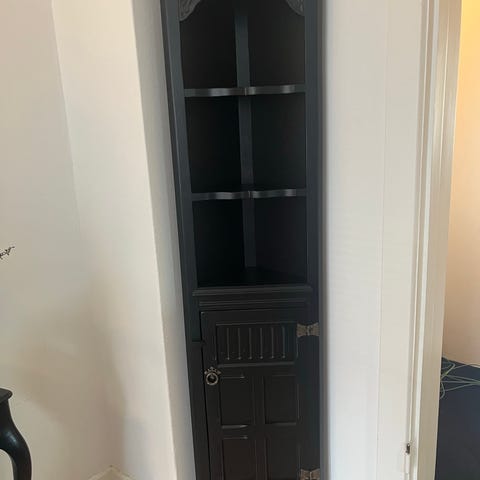 Fint lille hjørneskab i råhvid farve