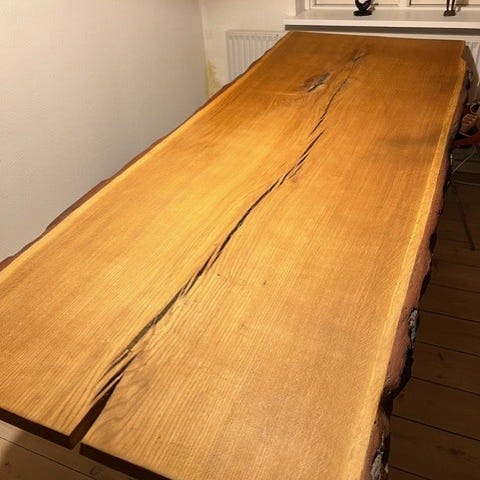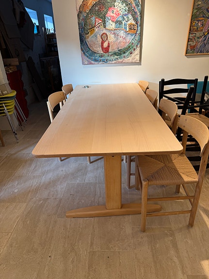 Spisebordet er blevet slebet og fremstår meget flot.