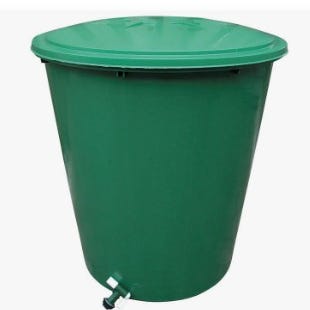Regnvandstønde på 210 liter til opsamling af regnvand.