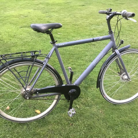 55 cm stel, 28 tommer dæk, 8 indvendige gear, lys for og bag.