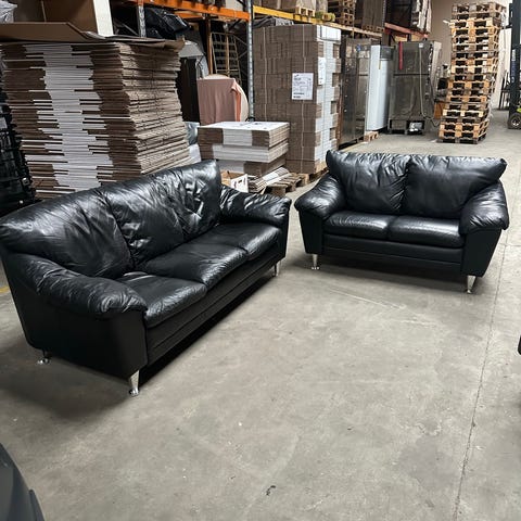 Sælger et flot sofasæt bestående af 2 stk. 3-personers sofaer og 1 stk. 2-personers sofa i sort læder. Sofaerne er kun ca. ½ år gamle og fremstår næsten som nye.
