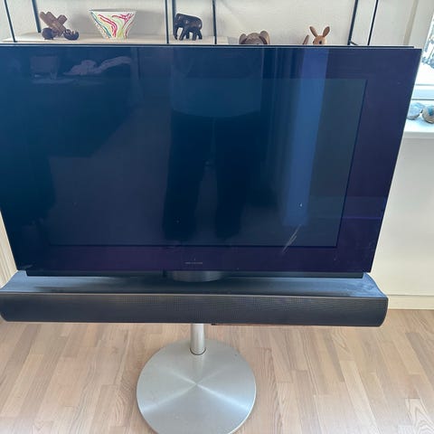 Bang & Olufsen TV- og lydstativ med sort finish. Stativet har plads til både TV og lydudstyr med separate hylder. Designet til at organisere og støtte elektroniske enheder i hjemmet.
