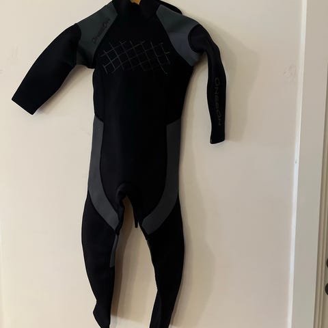 O'Neill Junior 13-14 år 160cm. Våddragt i sort og grå farve. Designet til børn, lavet af neoprenmateriale. Udstyret med lynlås på ryggen for nem på- og aftagning. Velegnet til vandsport og aktiviteter i koldt vand.