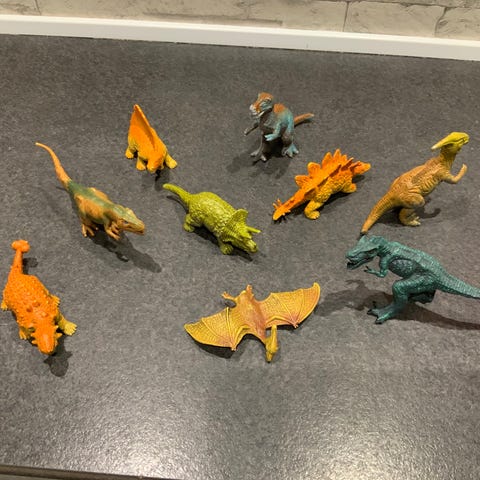 Legetøjsdyr og dinosaurfigurer sæt med forskellige størrelser og farver