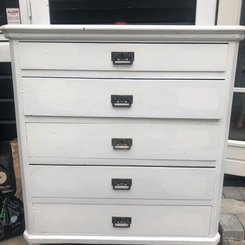 Fin lille blågrøn malet med hvid og natur bund (slidt vintagelook)