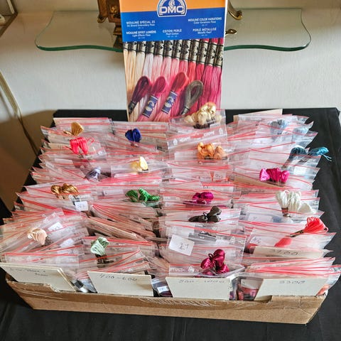 5 sider med DMC mouline special 25, Art 117 garn i nummer. (Dele i 6 tråde)