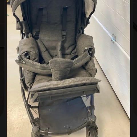 Odder barnevogn i sort farve. Velegnet til altan eller terrasse. Inkl. regnslag og madres.