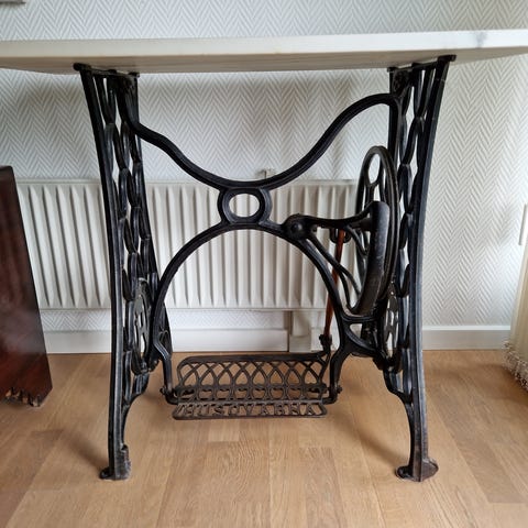 symaskinestel sybord, BEITZEL, ægte antikt sort symaskine bord med tyk lys marmorplade (jaaa pladen skal lige vaskes) 85 X 45 X 3 cm. sælges NU - billigt, Har stået i herskabs entre/hall. Skal ses/hentes i Vedbæk. Stellet er 73.5 højt.