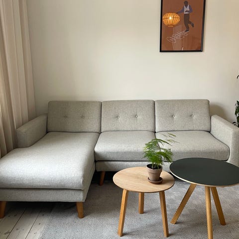 Flot og komfortabel hjørnesofa fra SofaCompany i lys grå.
