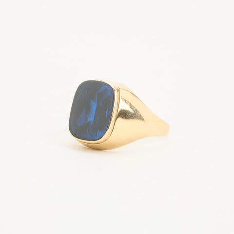 Signetring i 8K guld med blå sten, str. 66-Guld