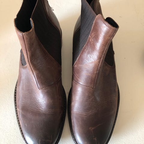 Læderstøvler. Sorte. Både snørelukning og lynlås i siden. Er købt for små og er derfor kun ganske lidt brugt.