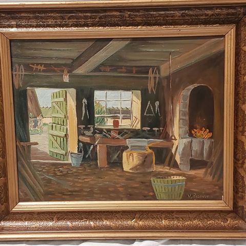 Andet, Adolf Rasmussen, motiv: Landskab, b: 50 h: 41, Maleri af Virksund Færgested
