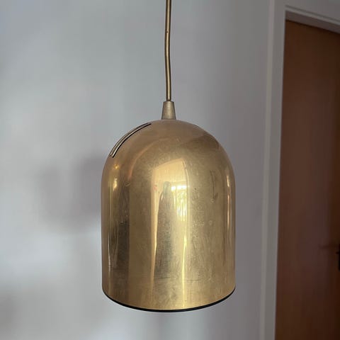 Messinglampe, fin og velholdt og med meget få brugsspor. Lampen er med hejs. Ledningen skal dog skiftes, da den er misfarvet. Højde ca. 25 cm. Diameter ca. 24,5. Fra ikke-ryger hjem. Afhentes eller sendes med DAO via dba. Køber betaler porto.
