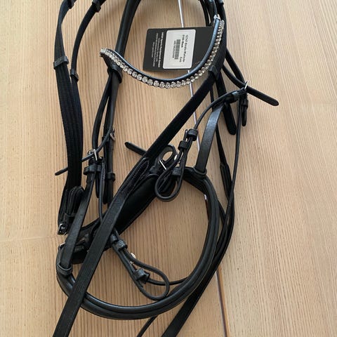 Super fin sort lædertrense /hvoedtøj str.pony/cob. Inkl. tøjler. Bid følger ikke med.