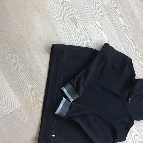 Sort bluse i størrelse XS. Fremstillet i viskose materiale. Designet til kvinder med omslagsdetalje og 3/4 ærmer. Super pæn i sig selv eller med en top under.