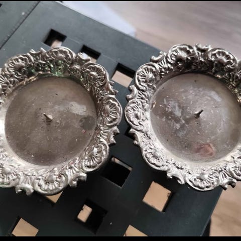 Lysestager, To lysestager til bloklys. Samlet for 40,-