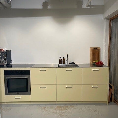 Flere køkkenfronter fra &Shufl sælges grundet renovering af køkken. Farven er grøn, laminat.