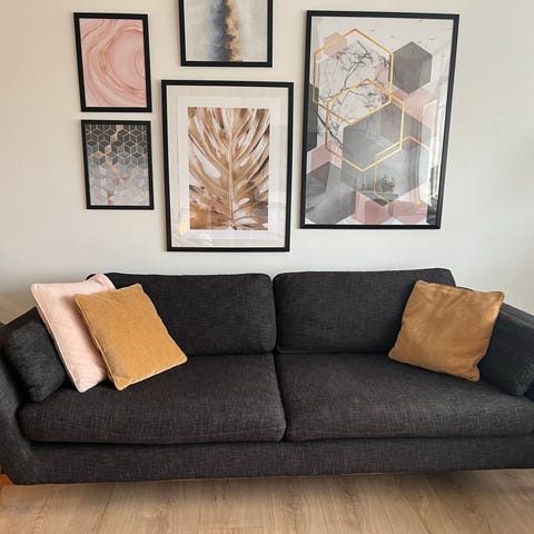 Stor "Flyder" 4 sæder Samt skammel (Farve Planet Gray) stof. Købt 03.02.25. Fra røg - og dyrefrit hjem. Kvittering haves. Nypris 12000. Skinner til samling af de 2 moduler medfølger. Sofaer samt skammel er som nyt. Efter en periode, kunne vi godt se, at det er for stort til vores lille stue. Er du interesseret, og vil købe, skal I være klar på, at være 2 stærke m/k til at løfte. Beklager, men vi er 2 ældre pensionister uden nævneværdig armkræfter.