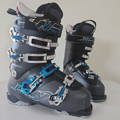 Tecnica Thirrd 6 alpinski støvler i sort og sølv. Støvlerne har flere spænder for justering og en robust konstruktion, designet til skiløb.