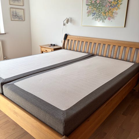 Sengen er brugt meget lidt. Der er gået en lille syning på rammen, ellers er den super flot