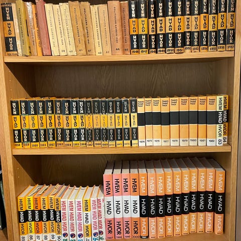 Hvem Hvad Hvor bogserie med udgaver fra 1980 til 2012. Serien indeholder årlige udgaver med forskellige temaer og opdateringer. Bøgerne er velegnede til opslagsværk og generel viden.