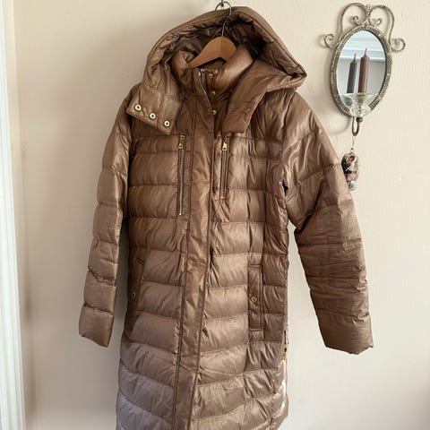 Ralph Lauren Vinterjakke i grøn farve, størrelse M til kvinder. Jakken er lavet af dun, som giver isolering og varme. Den har en længere pasform med hætte og lynlås foran. Velegnet til koldt vejr.