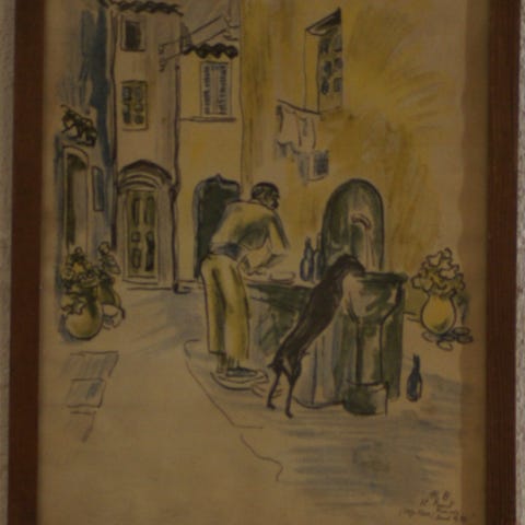 Billedkunst af ældre mand med hænder i ansigtet