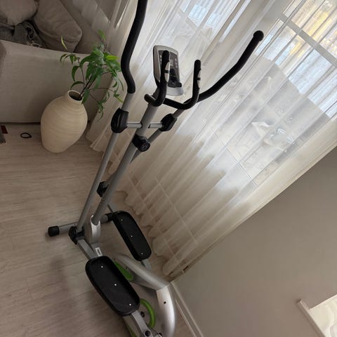 Kilberry Cross Trainer. 8 kg svinghjul. Maskinen måler 124 x 68 x 157 cm og har en maksimal brugervægt på 130 kg.