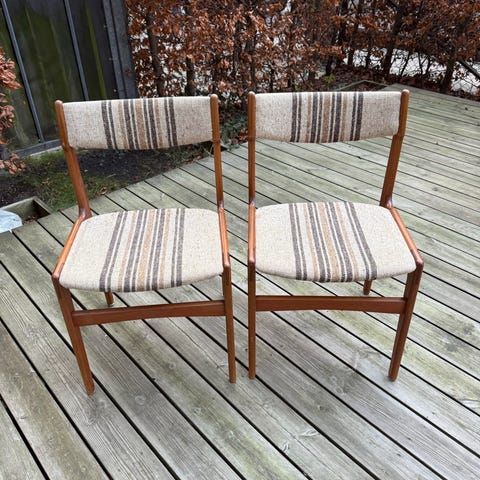 Pæne og faste i teaktræ kunne dog godt lige trænge til en ny omgang olie,højde fra gulv til ryg 81cm