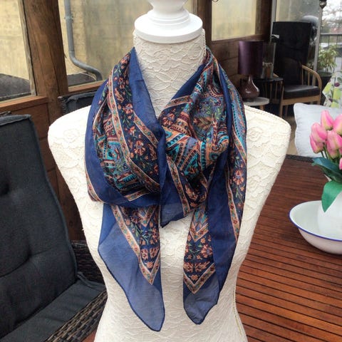 Tørklæde med 70% viskose og 30% silke.