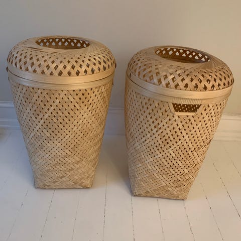 Tre vasketøjskurve i flet fra ikea i modellen Branäs. I fin stand og alle kurvene har stofposerne.