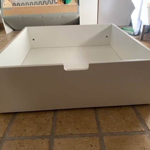 Flexa sengeskuffe i hvidpigmenteret bøg. Mål 98b x 92d x 20h cm. (højden er målt inkl. Hjulet på skuffen)